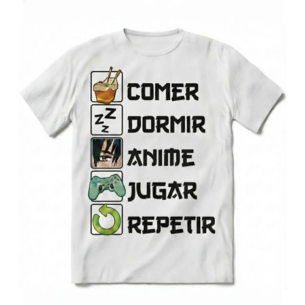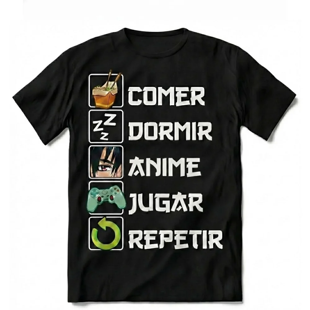 Camiseta Otaku Gamer Comer Dormir Anime | Estampado de Camisetas EN Cúcuta